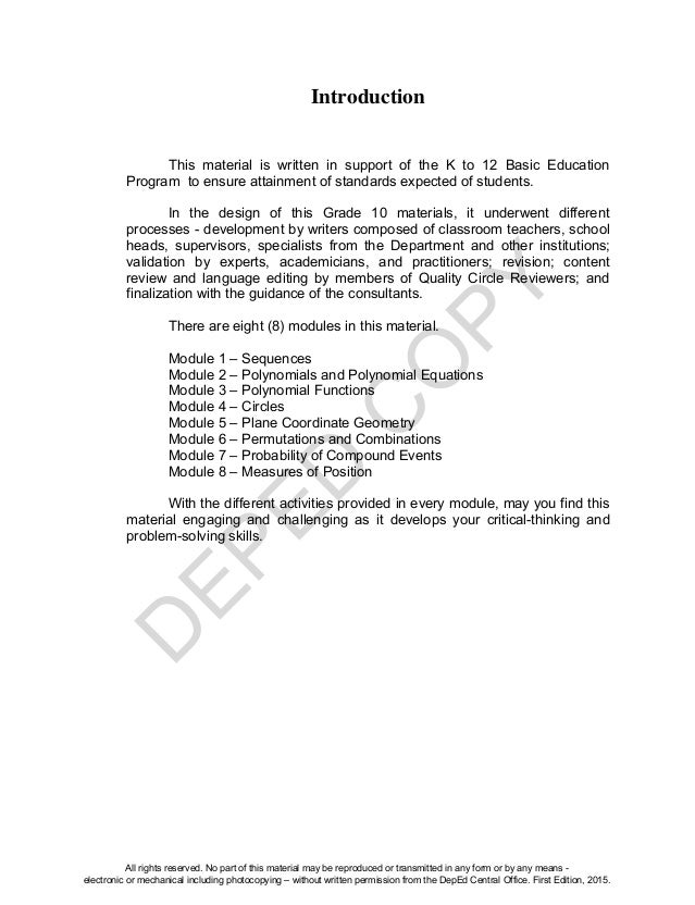 Grade 10 Math Module Unit 3 Pdf
