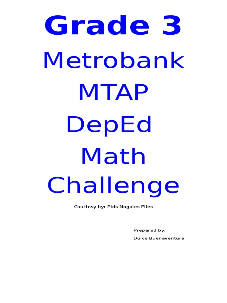 Questions 1 to 4 were Easy questions 1 point each. Mtap Reviewer For Grade Division Orals. The Metrobank-MTAP-DepEd Math Challenge MMC is a Math contest for elementary and junior high school students in both public and private schools nationwide.